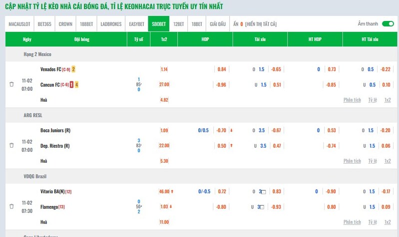 Trên BONGDAINFO, bảng kèo gần như nhúc nhích từng phút. Mình có thể thấy:
