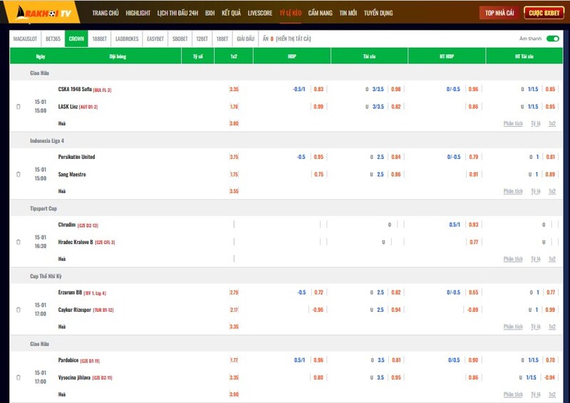 Giờ thì đến phần mà anh em mê cá cược chắc chắn quan tâm nhất: ti le keo. Ra Khơi TV làm rất tốt phần này. Bảng ti le keo được cập nhật liên tục, hiển thị rõ ràng các loại kèo: